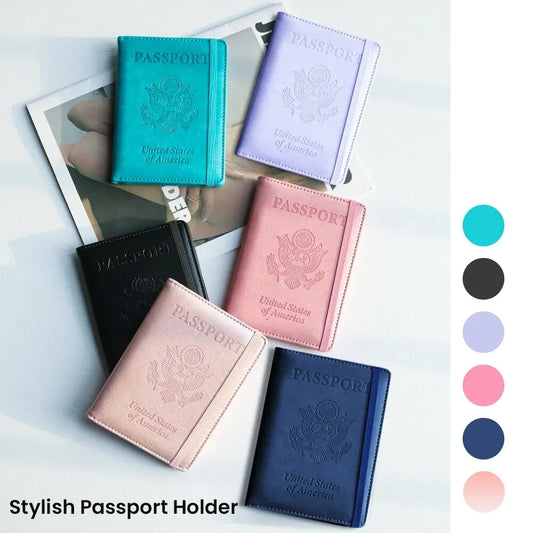 RFID-Safe PU Leather Passport Holder Durable Travel Wallet Document Organizer
